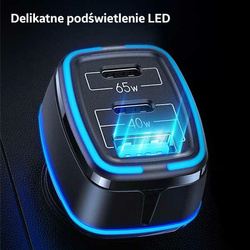 Usams US-CC141 C24 ładowarka samochodowa z trzema portami 2xUSB-C i 1x USB-A umożliwiająca ładowanie trzech urządzeń jednocześnie.