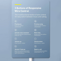Słuchawki douszne Baseus wyróżniają się prostym, modnym designem oraz wygodną obsługą. Dzięki wytrzymałemu, elastycznemu kablowi TPE możesz z nich korzystać wszędzie, począwszy od joggingu po relaks w domowym zaciszu. Komfort słuchania muzyki zapewnią Ci też funkcje odtwarzanie / pauza, czy też wygodne wybieranie kolejnego utworu. Słuchawki możesz podłączyć do każdego urządzenia z portem 3,5 mm mini jack.