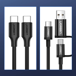 Uniwersalny kabel USB-C / USB-C cenionej marki Ugreen sprawdzi się zarówno podczas ładowania urządzeń mobilnych, jak i przesyłania danych.