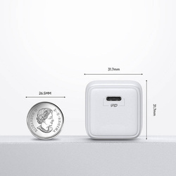 Mała, ale kompaktowa Ładowarka ma niewielki wymiar 31,7 mm x 31,7 mm. Zmieści się więc w każdej torbie, plecaku, schowku samochodowym, a nawet kieszeni.