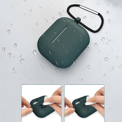 Karabińczyk na pomoc Etui do AirPods 3 jest bardzo poręczne, ale ze względu na niewielkie rozmiary łatwo je zawieruszyć. Postaw więc na cover z dopasowanym karabińczykiem – za pomocą ringu przymocujesz swoje słuchawki do torebki, plecaka czy turystycznej torby. Cover miękki, lekki, ale wytrzymały Silikon, z którego zostało wykonane etui do AirPods 3, idealnie dopasowuje się do oryginalnego kształtu słuchawek, nie pozostawiając żadnych przerw. Cover jest bardzo lekki (ma 2 mm grubości), ale perfekcyjnie chroni słuchawki przed skutkami upadków, uderzeń i wstrząsów. Szybko pozbądź się zabrudzeń Wybierając cover wykonany z silikonu, nie musisz obawiać się zarówno uszkodzeń, jak i zabrudzeń. Jeśli chcesz pozbyć się np. odcisków palców albo niechcianych plam, wystarczy, że delikatnie wytrzesz etui wilgotną szmatką. Gotowe! Funkcjonalny case w pięciu kolorach Silikonowe etui do AirPods 3 występuje w kilku wyjątkowych, eleganckich kolorach. Dołączony do zestawu karabińczyk ma klasyczny czarny kolor. Ładuj, jak chcesz Wolisz ładować swoje słuchawki bezprzewodowo czy przewodowo? Dla etui do AirPods 3 nie ma znaczenia, który sposób wybierzesz – cover pozwala na ładowanie słuchawek w dowolny sposób. Nie musisz już ściągać coveru, jeśli chcesz naładować swoje AirPodsy!