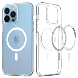 Podobne produkty Etui które łączy minimalistyczny design oraz ochronę na najwyższym poziomie. Wykonane z trwałego, elastycznego tworzywa TPU, które bezpiecznie otacza całe urządzenie w taki sposób, aby zapewnić doskonałą amortyzację. Dodatkowo, uzupełnione mocnym poliwęglanowym panelem, który zabezpiecza przed zarysowaniami i utwardza konstrukcję. Produkt jest idealnie dopasowany, w pełni funkcjonalny, nie ogranicza dostępu do portów zewnętrznych i skutecznie chroni telefon podczas upadków. Ultra Hybrid to idealne rozwiązanie ochronne przy zachowaniu minimalnej wagi oraz grubości. Ultra Hybrid został poddany testom sprawnościowym i otrzymał certyfikat MIL STD 810G-516.6 co oznacza, że spadało 26 razy z wysokości 2 metrów. Wszystkie produkty Spigen są testowane pod kątem odporności na ścieranie oraz precyzyjnego dopasowania, w celu dostarczenia wysokiej jakości etui. Ultra Hybrid Mag wyposażono w magnetyczny pierścień kompatybilny z bezprzewodową ładowarką MagSafe, zapewniając szybkie i łatwe ładowanie. CECHY PRODUKTU: ZESTAW ZAWIERA: