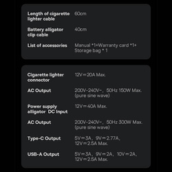 Napięcie wejściowe (zapalniczka samochodowa): 12V / 20A Max