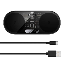 Baseus Digital LED Display podwójna ładowarka bezprzewodowa Qi z cyfrowym wyświetlaczem 20W czarny (WXSX010101)