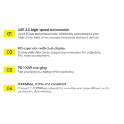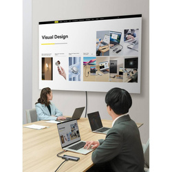 Jeżeli chcesz oglądać filmy na dużym ekranie prosto z Twojego laptopa – nie ma nic prostszego. Gadżet wyposażony jest w dwa gniazda HDMI, dzięki któremu będziesz mógł wygodnie podłączyć laptopa do telewizora i cieszyć się wysoką jakością odtwarzanych filmów. Dodatkowo, w przypadku podłączenia kolejnego monitora HUB może działać w trybach: rozszerzenia obrazu, bądź jego kopiowania.