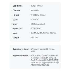 Gadżet od marki Baseus pozwoli Ci na w pełni swobodną pracę lub zabawę. Wszystko dzięki dużej liczbie dostępnych portów oraz gniazd. Nowe laptopy często nie mają gniazda RJ45, które dla graczy jest dość istotnym elementem. Dzięki HUBowi Baseus nie musisz się martwić jego brakiem. Dodatkowo znajdziesz w nim czytnik kard SD oraz TF.