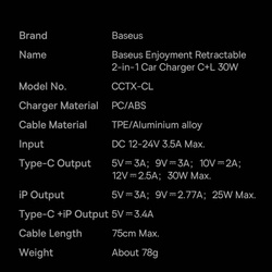 Baseus Enjoyment ładowarka samochodowa 2w1 30W czarny
