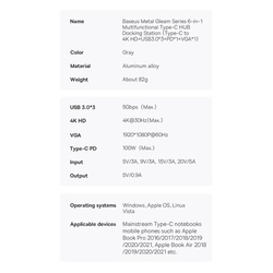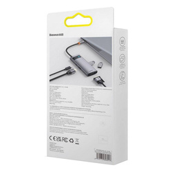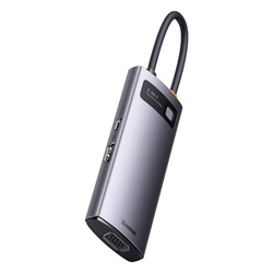 Baseus Metal Gleam Series stacja dokująca HUB 6 w 1 USB Typ C - 1 x HDMI / 3 x USB 3.2 Gen. 1 / 1 x Power Delivery / 1 x VGA szary (WKWG030013)