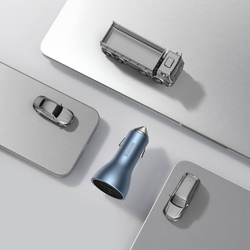 Potrzebujesz ładowarki samochodowej, która szybko naładuje dwa urządzenia w tym samym czasie? Podczas jazdy podepnij je do gadżetu Baseus wyposażonego w 2 porty USB-C. Wspiera protokoły szybkiego ładowania i obsługuje technologię BPS II fast. Ładowarka jest nie tylko wydajna, ale też bardzo estetyczna. Gustowna metalowa obudowa dobrze prezentuje się we wnętrzu auta, a także jest odporna na przegrzewanie. Urządzenie ma wbudowane również inne zabezpieczenia – nadprądowe czy przed zwarciem. Dzięki perfekcyjnemu kształtowi pozostaje stabilna nawet podczas jazdy po wyboistej drodze.