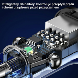 USAMS Przezroczysta podwójna ładowarka samochodowa USB A + A Mini Przezroczysty mechaniczny design idealnie ukazuje detale precyzyjnych komponentów tego urządzenia. Wspiera dwa niezależne porty szybkiego ładowania jednocześnie, oszczędzając cenny czas. Dwa porty łącznie do 3A gwarantują szybkie ładowanie. Porty USB są kompatybilne z protokołami fast charge takimi jak QC/AFC/SCP/FCP/Apple2.4 wspierając szybkie ładowanie dla modeli Huawei, Apple, Xiaomi, Honor, OPPO, Samsung, itd. Bezpieczeństwo zapewnia specjalny czip, który kontroluje temperaturę chroniąc przed zwarciem, wysokim napięciem, przegrzaniem itp. Ładowarka posiada ciepłe lampy LED, które zapalają się w momencie podłączenia.