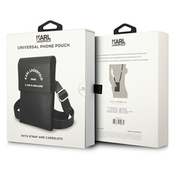 Torebka Karl Lagerfeld - Embossed RSG Modna i stylowa torebka na Twój telefon- oto najnowsza propozycja wprost od znanego i cenionego projektanta Karla Lagerfelda. W trosce o Twoją wygodę powstała torebka nie tylko o wysokiej funkcjonalności, ale również efektownym i ekskluzywnym wyglądzie. Etui zostało ozdobione logiem domu mody który sprawia, że torebka to akcesorium, stworzone dla minimalistów ceniących modę i dobry wygląd. Torebka wykonana została z wysokiej jakości skóry ekologicznej o strukturze Saffianom która jest idealna dla osób aktywnych, ceniących rozwiązania praktyczne nie tracąc na jakości i estetyce. Struktura materiału jest mało podatna na zabrudzenia i uszkodzenia. Torebka posiada odpinany nylonowy pasek na ramię, trzy kieszonki na karty/dokumenty i dwie przegrody na telefon. Dla jak największej wygody użytkownika torebka zamykana jest na magnetyczny klips. Produkt wyprodukowany na licencji Karla Lagerfelda.