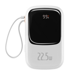 Baseus Qpow Digital Display powerbank z szybkim ładowaniem 20000mAh 22,5W QC/PD/SCP/FCP z wbudowanym kablem USB-C biały