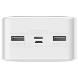 Baseus Bipow powerbank z wyświetlaczem 30000mAh 15W biały (Overseas Edition) + kabel USB-A - Micro USB 0.25m biały (PPBD050202) Produkt marki Baseus na pewno uratuje Cię w niejednej sytuacji. Nie będziesz musiał się martwić o rozładowaną baterię telefonu, czy tabletu. Dostęp do dodatkowego, niezależnego źródła zasilania pozwoli ładować sprzęt w każdym miejscu. Powerbank posiada wszystko, czego potrzebujesz, by czuć się komfortowo. Koniecznie przyjrzyj mu się bliżej! Specyfikacja: