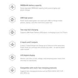 Gadżet został wyposażony w niesamowitą ilość aż 7 portów! 3 które służą do ładowania akcesorium (micro USB, Lightning, USB-C PD) oraz 5 do odnowienia energii Twoich mobilnych sprzętów (3x USB 2.0, USB QC, USB-C PD). I to nie żaden błąd w obliczeniach. Złącze USB typu C można wykorzystać zarówno do naładowania smartfona, laptopa czy bezprzewodowego głośnika, jak i samego powerbanku.