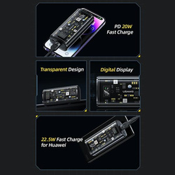 USAMS US-CD189 PD 20W + QC 3.0 Powerbank 9 000mAh USAMS US-CD189 to niezwykle praktyczny powerbank o nieszablonowym, nowoczesnym designie. Niewielkie gabaryty i kompaktowy rozmiar sprawiają, że jest niesamowicie komfortowy i wygodny w użytkowaniu. Przejrzysty, bardzo estetyczny projekt ukazuje zaawansowaną technologię skrytą za transparentną obudową. Produkt posiada wbudowany wyświetlacz LED który wskazuje aktualny poziom baterii. Powerbank za pomocą wskaźnika wyświetla, czy ładujące się urządzenie wykorzystuje technologię Fast Charging. Do produkcji tego powerbanka wykorzystano najnowocześniejszej technologii ogniwa, która chronią ładowane urządzenia przed przeładowaniem i przepięciami, ponadto dopasowuje napięcie do potrzeb urządzenia, jednocześnie chroniąc go przed przegrzaniem. Duża pojemność pozwala na swobodne jednoczesne ładowanie do dwóch urządzeń jednocześnie. Urządzenie USAMS US-CD 189 wyposażono w port USB o mocy 22,5W oraz USB-C cechujący się mocą 20W - oba porty mają funkcję szybkiego ładowania. Port USB i USB-C jest kompatybilny z protokołami szybkiego ładowania QC/AFC/SCP/Apple 2.4 - dzięki ich zastosowaniu bateria w telefonie iPhone 14 Pro ładuje się do poziomu 50% w czasie tylko 30 minut! Port USB-C służy jednocześnie jako port do ładowania urządzeń oraz wejście do ładowania powerbanka- dzięki dużej mocy 18W naładowanie go w pełni zajmie Ci około 3,5 godziny.