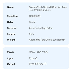 Podaj numer ID produktu: | Baseus Flash Series Ⅱ kabel do szybkiego ładowania 2w1 USB-C - 2xUSB-C 100W 1.5m czarny