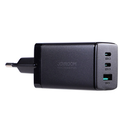 Szybka ładowarka GaN o mocy do 65W z portami USB i 2 x USB C Joyroom TCG01 + kabel USB C - USB C o długości 1,2 m i mocy do 100 WŁadowarka GaN Joyroom TCG01 ma dużą moc wyjściową – aż do 65 watów. Ma wbudowany zaawansowaną technologię GaN, która zapewnia stabilne ładowanie przy wytwarzaniu mniejszej ilości ciepła. Ładowarka Joyroom TCG01 posiada trzy porty (2 x USB C i 1 x USB), które pozwalają na zasilanie trzech urządzeń w tym samym momencie. Dzięki uniwersalnym portom może zastąpić Ci aż trzy ładowarki i jest kompatybilna z różnymi sprzętami: laptopami, tabletami i telefonami. Ładowarka GaN obsługuje też protokoły szybkiego ładowania Power Delivery, PPS, Quick Charge. A mały rozmiar sprawia, że jest łatwa do przenoszenia. Najważniejsze zalety szybkiej ładowarki GaN Joyroom TCG01: