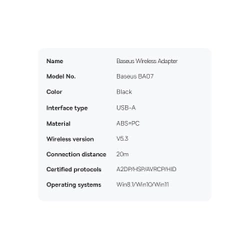 Podaj numer ID produktu: | Adapter Bluetooth USB Baseus BA07 - czarny
