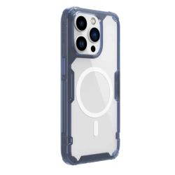 Etui magnetyczne Nillkin Nature TPU Pro do Appple iPhone 14 Pro (niebieskie)Jeśli często korzystasz z magnetycznych akcesoriów lub ładujesz swojego iPhone’a bezprzewodowo, przezroczyste etui magnetyczne Nillkin Nature z pewnością Ci się przyda. Nakładka została wykonana z najwyższej jakości materiału PC i TPU, który jest bardzo elastyczny i trwały. Na czterech rogach zastosowano odporne na upadki poduszki, a po obu stronach antypoślizgowe pręty, aby znacznie wzmocnić stabilność telefonu w ręce. Przemyślana budowa nie tylko chroni twój smartfon, ale również podkręca jego unikalny design, za sprawą transparentnej obudowy.