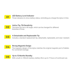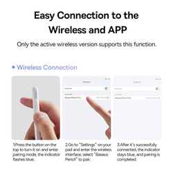 Aktywny rysik stylus do iPad Baseus Smooth Writing 2 SXBC060502 - biały Obsługa iPada staje się jeszcze płynniejsza i przyjemniejsza niż kiedykolwiek wcześniej! Dzięki rysikowi marki Baseus możesz cieszyć się z posiadania estetycznego oraz niezawodnego akcesorium, które perfekcyjnie wpisuje się w Twoje potrzeby. Wykonywanie codziennych czynności jak pisanie, czy rysowanie nie sprawi Tobie żadnych problemów. Rysik obsługuje pisanie pod różnymi kątami: 45°, 60° i 90°, co wpływa na precyzję i grubość kreski. Piszesz bez żadnych zakłóceń, a rysik pozostawia idealnie równy ślad na ekranie. Specyfikacja: