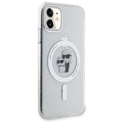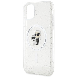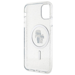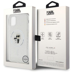 Karl Lagerfeld Karl&Choupette Glitter MagsafeKarl Lagerfeld - Karl & Choupette Collection - wyjątkowa seria pokrowców dzięki której będziesz prezentować się stylowo i modnie. Kolekcja Karl&Choupette stworzona jest dla każdego, kto szuka wyjątkowego etui do ochrony swojego iPhone'a. W procesie produkcji tego etui wykorzystano technologię IMD (In-Mould-Decoration). Grafika jest wytłoczona na gorąco a następnie powlekana delikatną warstwą TPU, przez co staje się odporna na ścieranie. Tył obudowy wykonany jest z przezroczystego poliwęglanu a krawędzie z elastycznego poliuretanu, który ułatwia montaż. Etui z kolekcji Karl&Choupette MagSafe idealnie podkreśli wyjątkowy design Twojego iPhone'a dzięki zastosowaniu podobizny słynnego projektanta Karla Lagerfelda i jego kotki Choupette. Grafiki są subtelne i perfekcyjnie komponują się z stylistyką całego pokrowca. Dzięki zastosowaniu drobinek brokatu, etui zyskuje nieszablonowy wygląd oraz pozwala zabłysnąć i wyróżnić się z tłumu. To doskonałe rozwiązanie dla osób, które cenią sobie oryginalność i lubią wyróżniać się na tle innych osób. Pokrowce wyposażono w magnetyczne pierścienie umożliwiającego łatwe i szybkie ładowanie wyposażonego w to etui telefonu. Pierścień jest piękną ozdobą pokrowca i podkreśla design telefonu iPhone. Magnetyczny ring jest w pełni kompatybilny z ładowarką MagSafe zapewniającym magnetyczne ładowanie. Stylowe etui ochronne zostało zaprojektowane, aby chronić urządzenie i zapewnić mu elegancki wygląd. Precyzyjne dopasowanie do urządzenia gwarantuje bezpieczeństwo przed rysami i uderzeniami. Produkt wyprodukowany na licencji marki Karl Lagerfeld.