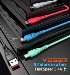 Szybki kabel Veger V104 do ładowania i transmisji danych ze złączem USB-A 2.0 USB-C. Kabel obsługuje natężenie prądu na poziomie 2,4 A. Aluminiowe końcówki, gruby oplot i wzmocnienia gumowe sprawiają, że kabel jest bardzo trwały. Długość 1,2 m pozwala na wygodne korzystanie z urządzenia, gdy jest podłączone do sieci. Specyfikacja: