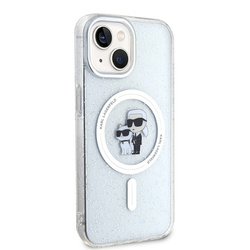 Karl Lagerfeld Karl&Choupette Glitter MagsafeKolekcja Karl&Choupette Glitter Magsafe to połączenie wyrafinowanego wyglądu i doskonałej jakości. Etui ochronne to wyjątkowa propozycja dla każdego, kto ceni sobie modne dodatki oraz chce zapewnić sobie stylowy wygląd. Z pokrowcem z kolekcji Karl&Choupette Glitter Magsafe możesz podkreślić swój znakomity styl oraz przywiązanie do cenionej marki odzieżowej i jednocześnie pragną zapewnić najwyższy poziom ochrony swojego urządzenia. Wytrzymałe materiały i doskonałej jakości wykonanieDo produkcji tej kolekcju wykorzystano wyłącznie najwyższej jakości materiały. Do produkcji wykorzystano mocny i twardy poliwęglan (plecki), który zapewnia wzmocnienie tylnej części telefonu przed zbiciem. Elastyczny termoplastyczny poliuretan wykorzystano na bokach urządzenia, który zapewnia łatwy montaż i demontaż, a także chroni boki urządzenia przed wyszczerbieniem. Telefon wyposażony w ten pokrowiec pewnie leży w dłoni, jest niemal idealnie dopasowany do urządzenia, dzięki czemu zwiększa się jego bezpieczeństwo i odporność na wstrząsy, a także amortyzuje go przed uderzeniami. Pokrowce posiadają delikatnie podniesione brzegi, dzięki czemu ekran i soczewka aparatu są chronione przed zarysowaniem czy stłuczeniem. Case jest perfekcyjnie dopasowany, posiada wszelkie osłony na przyciski i wycięcia na porty. Charakterystyczny i elegancki wyglądEtui z kolekcji Karl&Choupette MagSafe idealnie podkreśli wyjątkowy design Twojego iPhone'a dzięki zastosowaniu podobizny słynnego projektanta Karla Lagerfelda i jego kotki Choupette. Grafiki ułożono centralnie w środku pierścienia, mimo to są subtelne i perfekcyjnie komponują się z stylistyką całego pokrowca. Ozdoby zostały pokryte delikatną warstwą poliuretanu, który sprawia iż są one odporne na ścieranie, dzięki czemu pokrowce przez długi czas cieszą nienagannym wyglądem. Dzięki zastosowaniu drobinek brokatu, etui zyskuje nieszablonowy wygląd oraz pozwala zabłysnąć i wyróżnić się z tłumu. To doskonałe rozwiązanie dla osób, które cenią sobie oryginalność i lubią wyróżniać się na tle innych osób. Wygodne ładowanie telefonuKolekcja została wzbogacona o magnetyczny pierścień MagSafe, który jest kompatybilny z bezprzewodową ładowarką MagSafe, zapewniając szybkie i łatwe ładowanie. Od teraz zapomnij o zdejmowaniu etui aby naładować telefon - kolekcja umożliwia wygodne naładowanie baterii telefonu bez obaw o przypadkowe uszkodzenie aparatu. Produkt wyprodukowany na licencji marki Karl Lagerfeld.