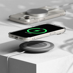 Wyjątkowe etui Ringke Fusion Magsafe, którego niewątpliwą zaletą są niewielkie gabaryty w stosunku do oferowanej ochrony. Wykonane z elastycznego poliwęglanu, dodatkowo wzmocnione amortyzującym tworzywem TPU. Całość świetnie niweluje wszelkie upadki oraz chroni przed zarysowaniami. Obudowa nie wpływa znacząco na wygląd i w istotny sposób poprawia pewność i komfort trzymania telefonu w dłoni. Polecana szczególnie w codziennej praktycznej ochronie urządzenia. Ringke Fusion Magsafe wyposażono w magnetyczny pierścień kompatybilny z bezprzewodową technologią MagSafe, zapewniając szybkie i proste połączenie ze wszystkimi akcesoriami z funkcją MagSafe. Fusion został poddany testom sprawnościowym i otrzymał certyfikat MIL STD 810G-516.6 co oznacza, że spadał 26 razy z wysokości 2 metrów. CECHY PRODUKTU: ZESTAW ZAWIERA: