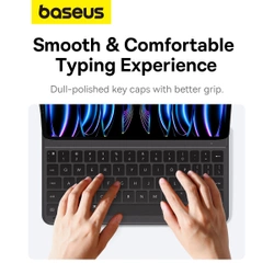 Płynna pracaPrzygotuj się na niesamowite doświadczenie pisania – etui z klawiaturą Baseus zapewni Ci płynność i ciszę, o której zawsze marzyłeś. Mechanizm nożycowy pozwala na subtelne odbicie klawisza podczas nacisku przy minimalnej ilości hałasu. Głębokość skoku klawiszy wynosząca 1 mm dodatkowo zwiększa wygodę. Ponadto dzięki wykończeniu o delikatnie szorstkiej fakturze nie musisz się martwić o powstawanie tłustych plam.