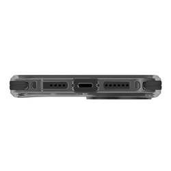 UNIQ COMBAT MAGCLICK CHARGINGUNIQ Combat - połączenie stylu i ochrony z wykorzystaniem inteligentnej technologii ShockSorb™. Technologia ta polega na wykorzystaniu korzyści użytego polimeru, który posiada zdolności pochłaniania i rozpraszania energii. Im większa siła uderzenia tym więcej cząsteczek skupia się razem zapewniając najlepszą ochronę. Pokrowiec po zaabsorbowaniu siły uderzenia natychmiast powraca do stanu elastycznego. Zaprojektowany z ekstremalnie wzmocnioną konstrukcją narożną i z 3-poziomową strukturą pochłaniającą wstrząsy, aby poradzić sobie nawet w najtrudniejszych warunkach. Podniesione krawędzie chronią ekran i kamerę przed zarysowaniem w styczności z płaską powierzchnią. Etui wyposażono w magnetyczny pierścień kompatybilny z bezprzewodową ładowarką MagSafe, zapewniając szybkie i łatwe ładowanie.