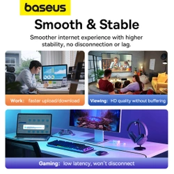 Płynność i stabilnośćBaseus RJ45 dzięki swojej przemyślanej budowie zapewnia wyższą stabilność, dzięki czemu nie musisz obawiać się zakłóceń, opóźnień czy niechcianych rozłączeń. Doskonale nada się do pracy, ponieważ za jego pomocą możesz szybko pobierać i przesyłać pliki. Co więcej, gwarantuje jakość HD bez buforowania. Poznaj nowy komfort użytkowania, który zapewni Ci Baseus!