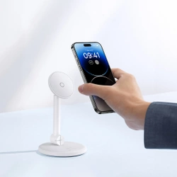 Magnetyczny uchwyt na telefon Baseus MagPro (biały)Ustaw swój telefon w praktyczny sposób z nowoczesnym uchwytem magnetycznym Baseus MagPro. Wykonany z trwałych materiałów ABS+PC, uchwyt oferuje teleskopowy wysięgnik, który umożliwia regulację wysokości telefonu od 165mm do 197mm. Dzięki temu masz większą swobodę w dostosowaniu kąta widzenia do swoich potrzeb, czy to podczas wideokonferencji, oglądania filmów, czy innych zastosowań.