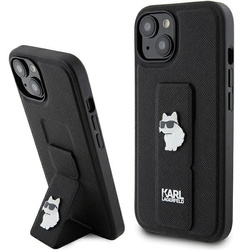 Etui Karl Lagerfeld KLHCP15SGSACHPK iPhone 15 6.1" czarny/black hardcase Gripstand Saffiano Choupette Pins Case