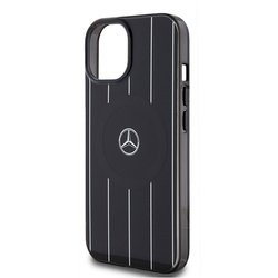 Stylowe etui ochronne zostało zaprojektowane, aby chronić urządzenie i zapewnić mu modny wygląd. Dzięki pokrowcom z tej kolekcji iPhone stanie się jeszcze bardziej wyjątkowy oraz zyska wysokiej klasy wygląd High-End. Ekskluzywny wyglądTa niesamowita kolekcja zachwyci nawet najbardziej wybrednego użytkownika, który oczekuje od etui nie tylko doskonałej ochrony, ale przede wszystkim zachwycająceo wyglądu. Plecki zostały ozdobione pionowo ułożonymi paskami, co sprawia iż ta seria nabiera bardzo dynamicznego charakteru. Motyw ten został pokryty cienką warstwą przeźroczystego poliuretanu, dzięki czemu print ten jest odporny na ścieranie. Dodatkową ozdobą jest duże logo marki Mercedes, które ulokowano w środku pierścienia MagSafe. Logo jest jednocześnie symbolem autentyczności oraz nienagannej jakości produktu. Poczuj moc bezprzewodowego ładowaniaMagnetyczny pierścień w etui nie tylko gwarantuje kompatybilność z bezprzewodową ładowarką MagSafe, umożliwiając szybkie i wygodne ładowanie, lecz także zapewnia stabilne utrzymanie urządzenia podczas procesu ładowania, eliminując potencjalne przesunięcia czy przerwy w zasilaniu. Dzięki temu etui staje się nie tylko estetycznym dodatkiem, ale też funkcjonalnym narzędziem do codziennego użytku. Produkt wyprodukowany na licencji marki Mercedes-Benz.