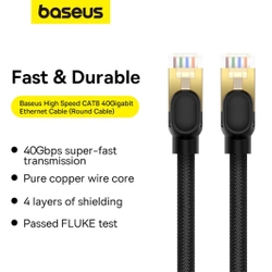 Baseus szybki kabel sieciowy RJ-45 cat.8 40Gbps 1m okrągły - czarnyZanurz się w świat niesamowitej prędkości i niezawodności z naszym szybkim kablem sieciowym Baseus RJ-45 Cat.8. Dzięki szerokości pasma transmisji wynoszącej 2000MHz oraz maksymalnej prędkości transmisji aż 40 Gb/s, jesteśmy gotowi dostarczyć Ci niezrównane wrażenia z korzystania z sieci. Najważniejsze zalety: