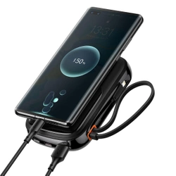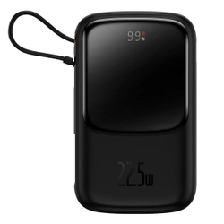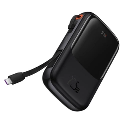 Baseus Qpow Digital Display powerbank z szybkim ładowaniem 10000mAh 22,5W QC/PD/SCP/FCP z wbudowanym kablem USB-C czarny