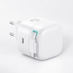 USAMS Ładowarka sieciowa 1xUSB-C ze zwijanym kablem USB-C PD+QC 35W Gan Fast ChargingŁadowanie z kontrolą temperaturyOdkryj nową erę ładowania dzięki ładowarce sieciowej USAMS. Wyposażona w inteligentną technologię kontroli temperatury, gwarantuje bezpieczne ładowanie przy niskiej temperaturze, eliminując ryzyko przegrzewania podczas procesu ładowania. Potrójna ochrona dla bezpieczeństwaZapewnij sobie spokój podczas ładowania dzięki potrójnej ochronie ładowarki USAMS. Obejmuje ona wiele funkcji, takich jak zabezpieczenia przed zwarciem, nadprądem, nadmiernym napięciem, przeciążeniem mocy, a także ochronę przed przegrzaniem, zapewniając kompleksową ochronę dla Twojego urządzenia. Wydajne ładowanie z technologią GaNCiesz się niezwykle szybkim ładowaniem dzięki technologii GaN, która pozwala na imponujące tempo ładowania do 35W. Modularny design umożliwia swobodne przełączanie pomiędzy kablami Lightning a Type-C, zapewniając elastyczność ładowania, idealną zarówno dla urządzeń Apple, jak i innych producentów. Wygodne i przenośne rozwiązanieŁadowarka USAMS to także wygoda w codziennym użytkowaniu. Dzięki funkcji taśmy rozszerzającej z łatwością dostosujesz długość kabla do własnych potrzeb, a kompaktowy design sprawi, że ładowanie stanie się łatwe i mobilne, gdziekolwiek się znajdziesz. Dwukrotne ładowanie z inteligentną regulacją mocyPraktyczne wsparcie dla ładowania dwóch urządzeń jednocześnie! Ładowarka USAMS pozwala na podwójne ładowanie przy jednoczesnej inteligentnej regulacji mocy, gwarantując, że oba urządzenia otrzymają maksymalną moc 17.5W, zapewniając szybkie i efektywne ładowanie.