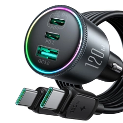 Ładowarka samochodowa Joyroom JR-CCN07 o mocy do 120 W z 3 portami + kabel USB-C / USB-C o mocy do 100 W - ciemnoszaraPrzedstawiamy potężne urządzenie, które zmieni Twoje podejście do ładowania urządzeń w podróży. Joyroom JR-CCN07 to elegancka, ciemnoszara ładowarka samochodowa o mocy 120W, wyposażona w kabel USB-C do USB-C 100W, zapewniająca pełne, szybkie ładowanie różnych urządzeń elektronicznych. Najważniejsze zalety ładowarki samochodowej Joyroom JR-CCN07: