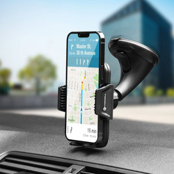 Mocny i stabilny uchwyt samochodowy do zamontowania na szybie lub gładkim kokpicie. Posiada elegancki design- motyw carbonu sprawia, że doskonale prezentuje się z wnętrzem każdego auta. Mocny, jak żaden inny- potrójne zabezpieczenie Uniwersalne zastosowanie Duże możliwości regulacji Uchwyt wyposażony jest w przycisk zwalniający zaciski, co ułatwia wyjecie telefonu z uchwytu. Specyfikacja: