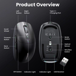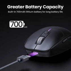 Szybkie ładowanie z pomocą USB-CNie musisz martwić się o częste ładowanie. Myszka UGREEN MU103 posiada wbudowany akumulator o pojemności 700mAh i można ją ładować za pomocą uniwersalnego złącza USB-C. To oznacza, że Twoja myszka zawsze będzie gotowa do pracy.