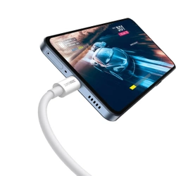 Baseus Superior Series kabel SUPERVOOC USB-A do USB-C 65W 1m biały Twój kabel do ładowania nie spełnia pokładanych w nim oczekiwań? Ładowanie telefonu trwa zbyt długo, a przesyłanie plików jest wyjątkowo uciążliwe? Jeżeli tak, to firma Baseus ma gadżet przygotowany idealnie dla Ciebie. Akcesorium wyprodukowane z myślą o urządzeniach, które wymagają szybkiego ładowania VOOC Charge. Produkt przeznaczony jest do ładowania urządzeń i transferu danych. Kabel oparty jest na technologii, która pozwala na przepływ prądu o mocy 65W. Dzięki temu możemy w bardzo krótkim czasie ładować sprzęty wspierające protokoły szybkiego ładowania.