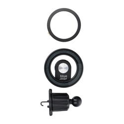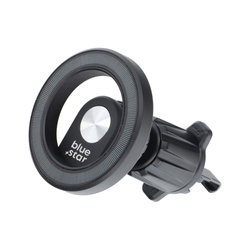 Podobne produkty BLUE STAR MAG TWIST to magnetyczny uchwyt samochodowy, który zapewnia wygodne i bezpieczne mocowanie smartfona do kratki wlotu powietrza w pojeździe. Kompatybilny z technologią MagSafe, uchwyt jest idealnym rozwiązaniem dla użytkowników iPhone'ów z serii 12 lub nowszych oraz etui wspierających magnetyczne mocowanie. Silny magnes wbudowany w uchwyt zapewnia, że smartfon pozostanie na miejscu nawet podczas dynamicznej jazdy, eliminując obawy o przypadkowe zsuwanie się czy upadki urządzenia. Innowacyjny design oraz łatwość montażu sprawiają, że uchwyt jest nie tylko praktyczny, ale i stylowy dodatek do wnętrza każdego samochodu. Dzięki kompaktowej formie i solidnej konstrukcji, uchwyt jest zarówno trwały, jak i dyskretny. Instalacja uchwytu jest szybka i intuicyjna – wystarczy zamocować go do kratki wlotu powietrza i przyłożyć do niego urządzenie lub etui wspierające MagSafe. Dzięki dołączonej metalowej płytce można używać uchwytu również ze smarfonami nie wspierającymi magnetycznego mocowania. Specyfikacja: