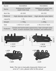 Sakwa rowerowa Rockbros AS-043 wodoodporna na ramę - czarnaOdkryj nową definicję podróżowania na rowerze z torbą rowerową Rockbros AS-043, która łączy w sobie wytrzymałość, funkcjonalność i design. Wykonana z wodoodpornego materiału, wyposażona w przestrzeń 3 litrów, ta torba jest idealnym towarzyszem każdej rowerowej przygody. Najważniejsze zalety torby rowerowej Rockbros AS-043: