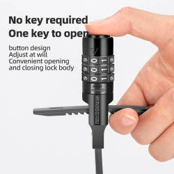 Zapięcie rowerowe Rockbros 3240001001 na szyfr, o długości 0,5m - czarneW świecie, gdzie bezpieczeństwo Twojego roweru i akcesoriów jest na wagę złota, Zapięcie rowerowe Rockbros 3240001001 na szyfr wyróżnia się innowacyjnością i niezawodnością. Wnętrze linki jest zrobione z solidnej stali nierdzewnej, a korpus zamka ze stopu cynku. Z łatwością przymocujesz je do koła, ramy, czy bagażnika, a jego 0,5 m długości umożliwia zabezpieczenie także plecaków, kasków, czy wózków dziecięcych. Najważniejsze zalety zapięcia rowerowego Rockbros 3240001001:
