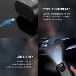 Wyświetlacz LEDNowoczesny wyświetlacz LED nie tylko ułatwia monitorowanie ciśnienia w oponach, ale również dodaje pompce nowoczesnego charakteru. Wpisuje się w potrzeby technologicznie świadomych użytkowników. PrzenośnośćPosiada kompaktowe rozmiary i jest lekka. Bez problemu zmieści się w każdym bagażu, gotowa do użycia w każdej sytuacji. Mocna bateriaOferuje niezawodność i długotrwałe wsparcie w trasie. Dwa mocne akumulatory o łącznej pojemności 5200 mAh, które sprawiają, że pompka jest zawsze gotowa do działania.