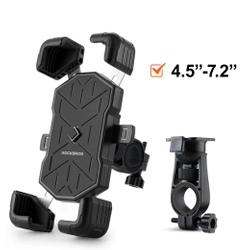 Uchwyt na telefon Rockbros 25210030001 do roweru, na kierownicę - czarnyZapewnij sobie wygodę i bezpieczeństwo podczas jazdy rowerem dzięki uchwytowi na telefon Rockbros 25210030001. Wyjątkowy design i solidna konstrukcja sprawią, że Twoja podróż stanie się jeszcze bardziej przyjemna. Sprawdzi się idealnie jako uchwyt na rower lub hulajnogę. Obraca się o 360 stopni a jego montaż jest niezwykle łatwy. Najważniejsze zalety uchwytu na telefon Rockbros 25210030001: