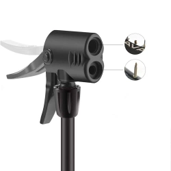 Podwójna głowica z blokadąPompka rowerowa Rockbros 42610002001 jest kompatybilna z najpopularniejszymi typami wentyli - Presta i Schrader, co czyni ją niezwykle uniwersalnym narzędziem. Wbudowany manometrUmożliwia precyzyjne kontrolowanie ciśnienia podczas pompowania, co jest kluczowe dla optymalnej jazdy i bezpieczeństwa użytkownika. Składany podnóżekSkładany podnóżek nie tylko ułatwia przechowywanie i transport pompki, ale także zapewnia jej stabilność podczas użytkowania, co znacząco zwiększa komfort i efektywność pompowania.