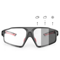 Okulary rowerowe Rockbros SP216BK fotochromowe UV400 - czarno-czerwoneDzięki inteligentnej technologii fotochromowej okulary rowerowe Rockbros SP216BK dynamicznie dostosowują się do zmieniającego się natężenia światła. Zapewniają więc optymalną ochronę przed promieniowaniem UV i komfort w każdych warunkach. Lekka i wytrzymała konstrukcja minimalizuje obciążenie, a modny design pozwala wyróżnić się w tłumie. Dodatkowo regulowany nosek i miękkie zauszniki gwarantują doskonałe dopasowanie i przewiewność, co jest kluczowe podczas długotrwałej jazdy. Najważniejsze zalety okularów rowerowych Rockbros SP216BK: