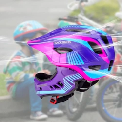 Podaj numer ID produktu: | Kask rowerowy Rockbros TT-32SBPP-S dziecięcy z odpinaną szczęką rozmiar S - fioletowo-różowy