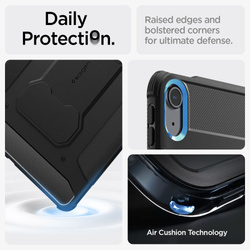 Etui Rugged Armor Pro od renomowanej firmy Spigen, to etui w pełni chroniące nasze urządzenie, bez kompromisu w kwestii użyteczności i wygody korzystania. Etui jest bardzo smukłe, jak na oferowane możliwości zabezpieczenia. Pokrowiec wykończony jest matowym wzorem z półmatowymi wstawkami i skromnym, srebrnym logiem Spigen dla subtelnego kontrastu. Całość prezentuje się bardzo schludnie i elegancko. Idealny produkt dla osób ceniących sobie styl, komfort i bezpieczeństwo. Spigen Rugged Armor “PRO” ma jeszcze jedną funkcjonalną zaletę - automatycznie budzi i usypia, gdy otwierasz i zamykasz przednią część. Jak sprawdzić czy dane akcesorium pasuje do Twojego iPada? CECHY PRODUKTU: ZESTAW ZAWIERA: